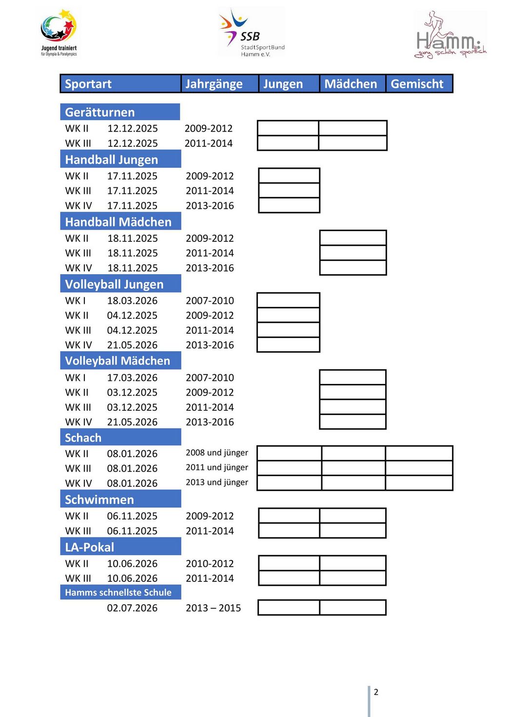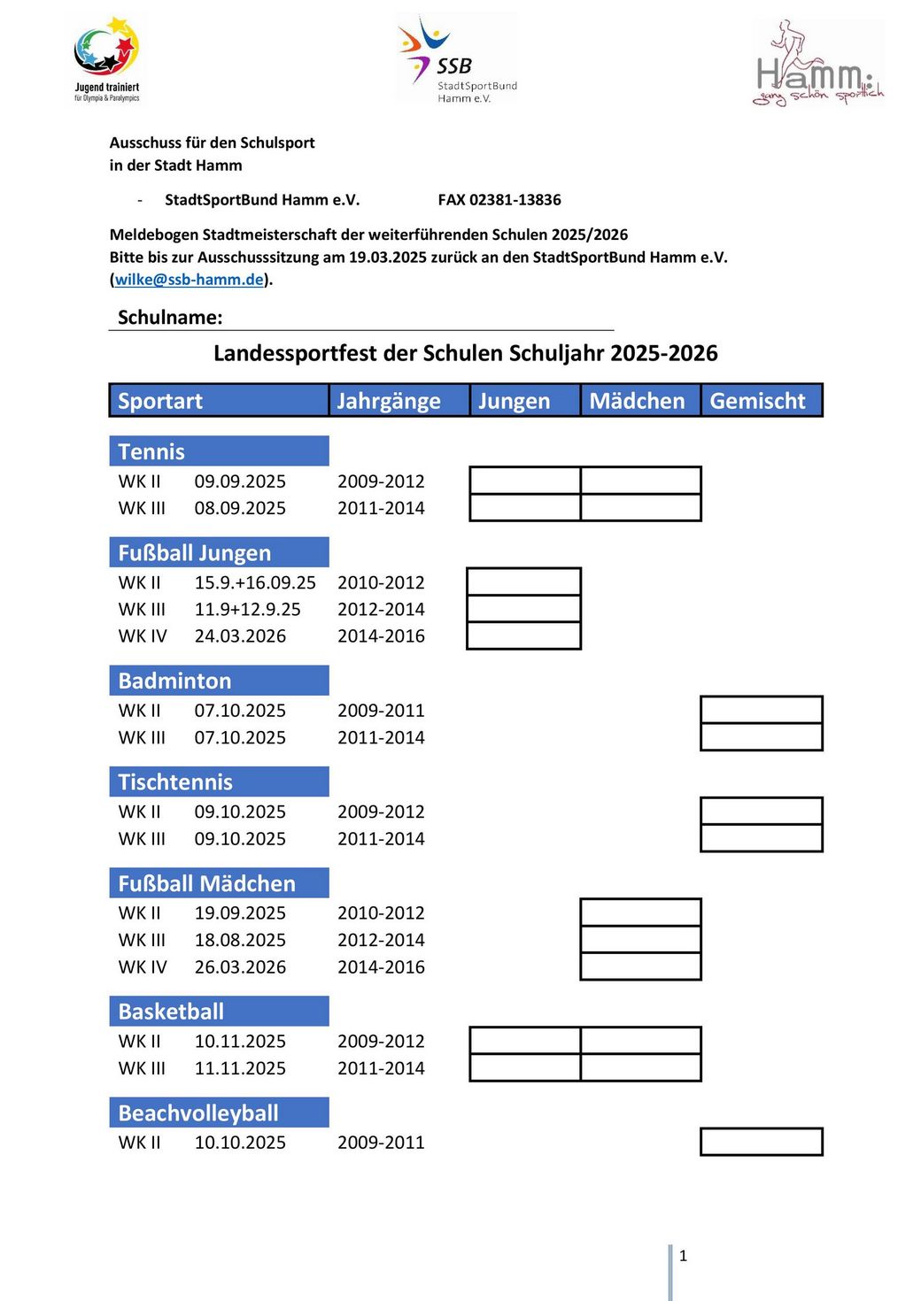 Dieser Wettbewerb bietet allen weiterführenden Schulen im Rahmen des Landessportfest der Schulen einen schulsportlichen Vergleichswettbewerb an, der als Mannschaftsmehrkampf konzipiert ist. Die Ausschreibungen ist bei allen Ausschüssen für den Schulsport in den Kreisen und kreisfreien Städten und bei der Landesstelle für den Schulsport erhältlich. Die Planung und Organisation liegt im Verantwortungsbereich der beteiligten Ausschüsse für den Schulsport in den Kreisen und kreisfreien Städten. Die Vorbereitung und Durchführung der jeweiligen Veranstaltungen soll durch die beteiligten Schulen unter Mitwirkung der Berater für den Schulsport und gegebenenfalls der Sportvereine erfolgen